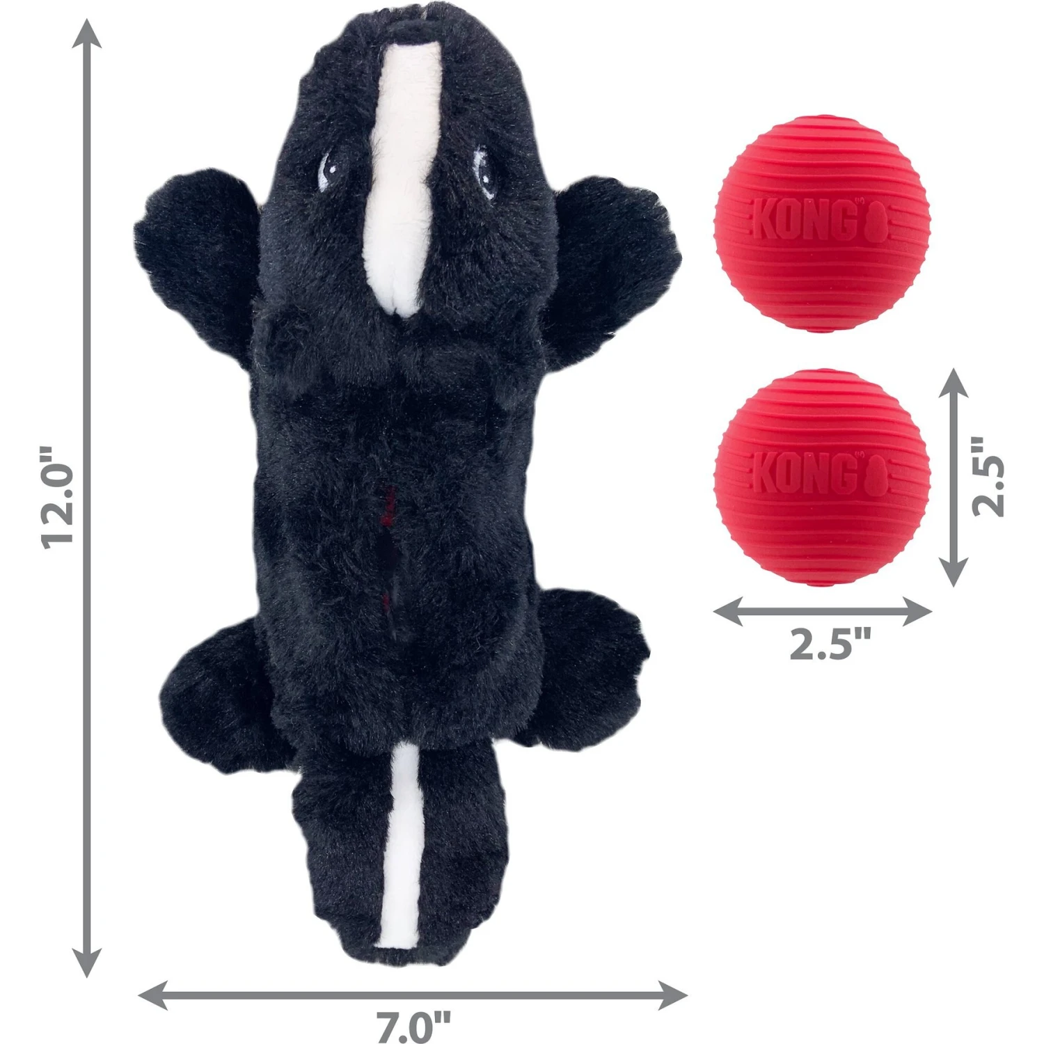 Dogs go crazy for squeaker toys, and that’s just one of the reasons they’ll love this KONG Cozie Pocketz Skunk Dog Toy. The toy’s internal pouch holds two squeaker balls that entice dogs to puzzle them out, rewarding hunting instincts with more bouncing, rolling fun. To extend the intrigue, you can replace balls in the toy, which also features a crinkly body and extra-soft plush.