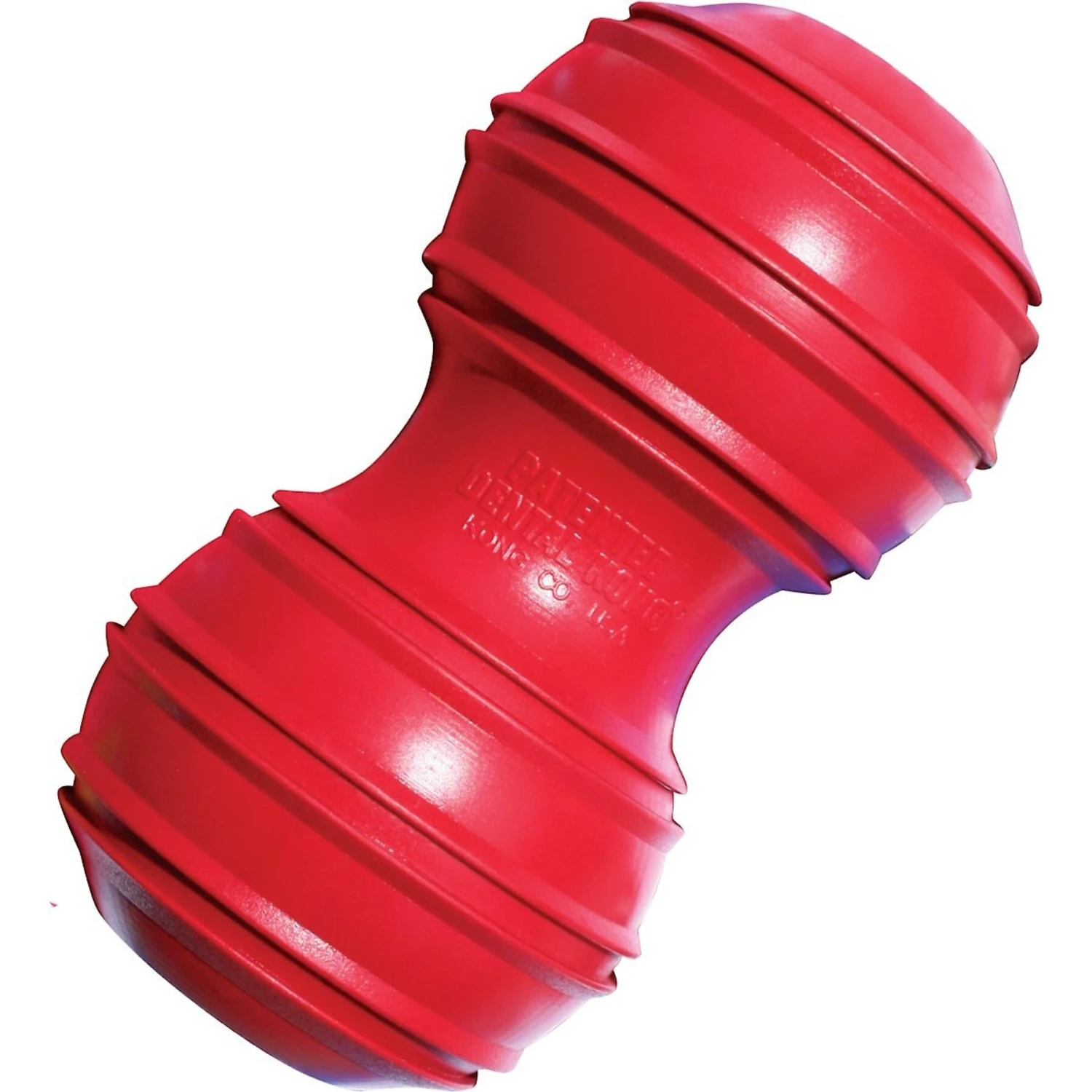 KONG Dental Dog Toy provides your furry friend with ample fun while helping with his oral health. Made from all-natural red rubber, this toy has specially designed grooves that help clean the teeth and gums of your pup. Spread KONG Easy Treat on the grooves to get your dog chewing or fill the inside with KONG Snacks or Ziggies (sold seperatley) to add more excitement to playtime. Whether your paw-tner loves a game of fetch or simply wants something to chew on, KONG Dental Dog Toy will fulfill those needs while giving him a clean mouth at the same time.