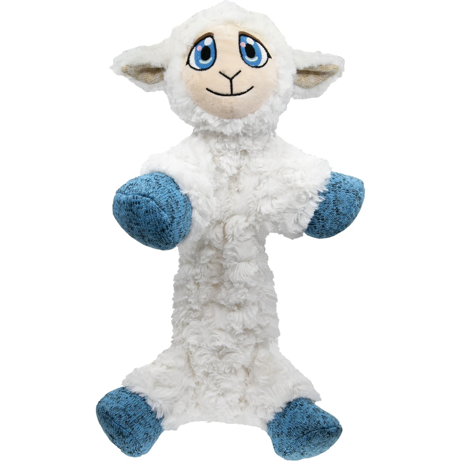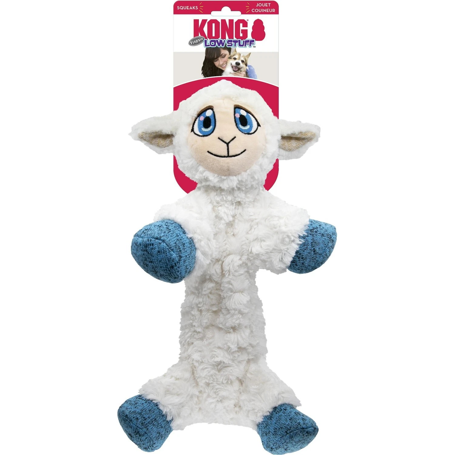 Add a touch of barnyard whimsy to playtime with the KONG Low Stuff Flopzie Lamb Squeaky Plush Dog Toy. With a snuggly-soft long body and a weighted bottom, this adorable lamb-shaped plush toy is great for shaking and thrashing fun, rewarding your canine companion’s natural instincts. It’s made with less stuffing inside and an added liner, so there’s less mess in case your BFF is a tough chewer. Plus, multiple squeakers with varying tones keep your dog engaged and entertained. Your dog will love playing with this cuddly barnyard buddy!