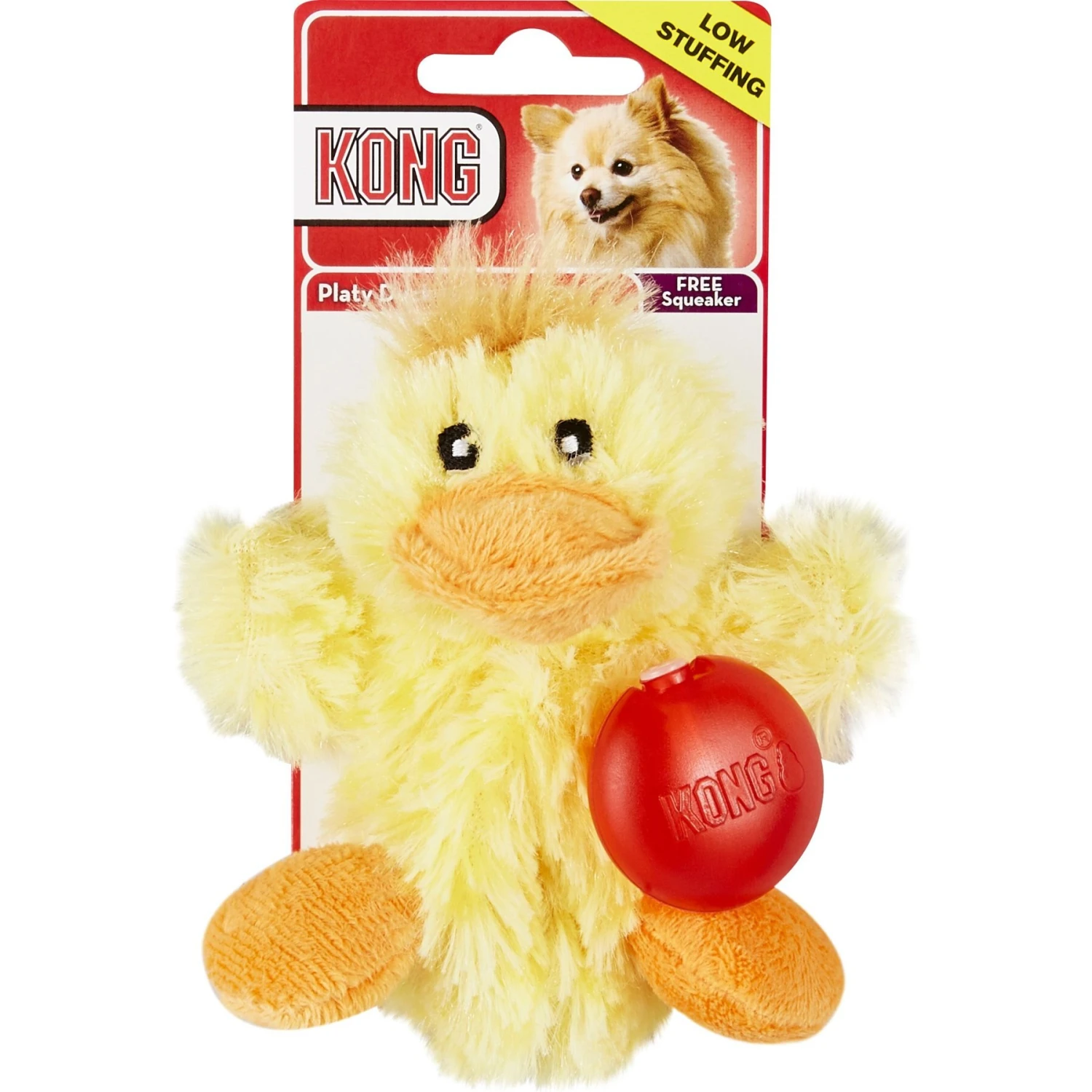 KONG Plush Duck Dog Toy, Small—The KONG Dr. Noyz Duck guarantees playtime fun in more ways than one. Thanks to its removable squeaker, you can change how you play to match your mood. Looking for a little peace and quiet? No problem! Pull the squeaker and enjoy a lighter round of play, or a snuggly cuddle session. With minimal stuffing, there’s less potential for mess, too—which ensures both cuddle time and playtime are a delight for all involved. It also includes an extra squeaker to make sure those active play sessions last longer. If the squeaker ruptures after a while, simply replace it with a new one. A soft cuddly exterior make this toy great for cuddle time as well.
