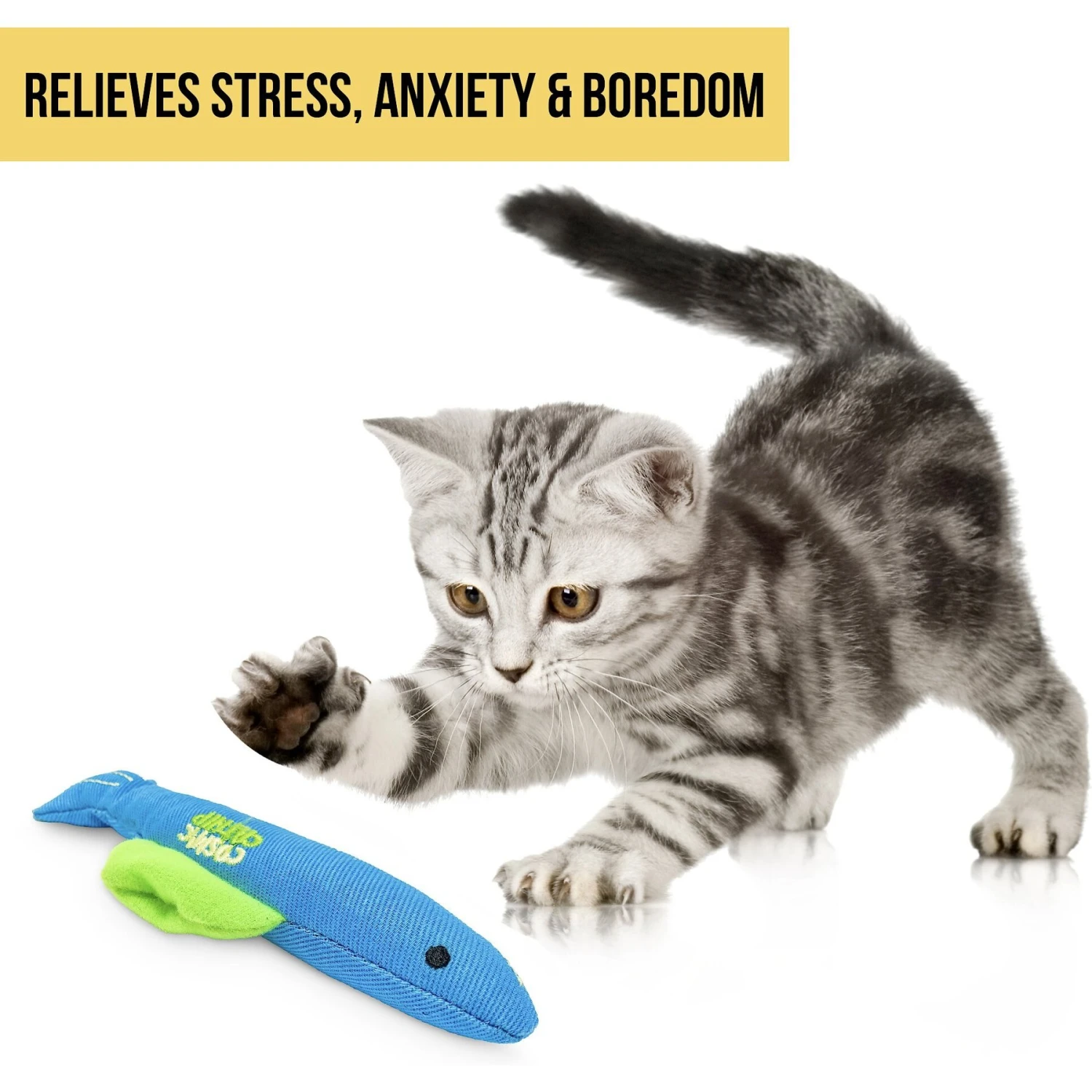 OurPets Annette Fish Cat Toy will keep your cat entertained and energized. Filled with North American grown catnip this charming toy will stimulate your feline’s senses and awaken curiosity. Cats can’t wait to pounce on this fishy. The fun shape and aroma helps to reduce boredom and inappropriate behaviors. Chock-full of catnip, every swat, bat or bite releases the aromatic fragrance to keep kitty amused for hours.