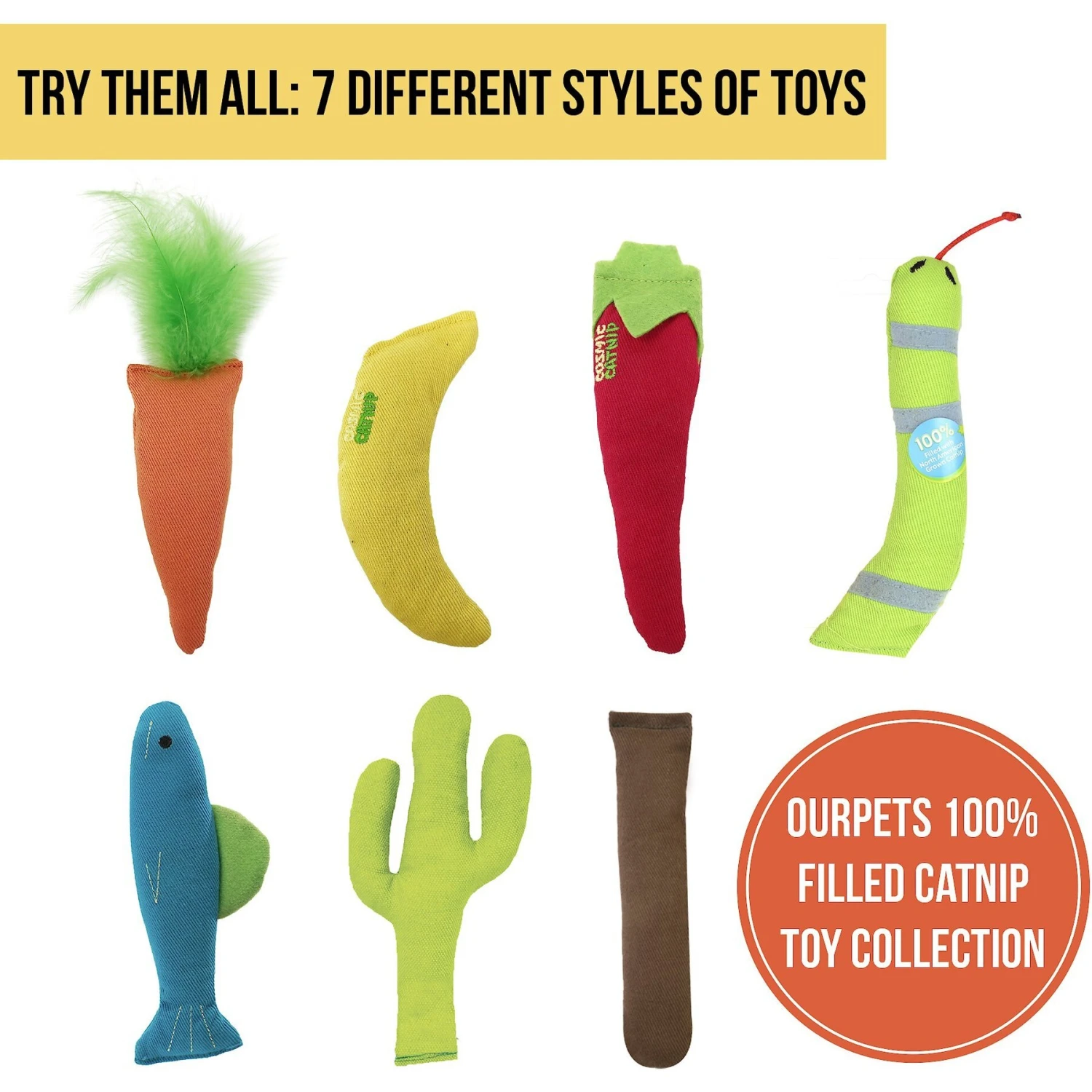 - Part of the OurPets 100% Filled Catnip Toy Collection—collect the Cactus (Prickles), Chili (Hot Stuff) and Carrot (24 Karat) toys, too!