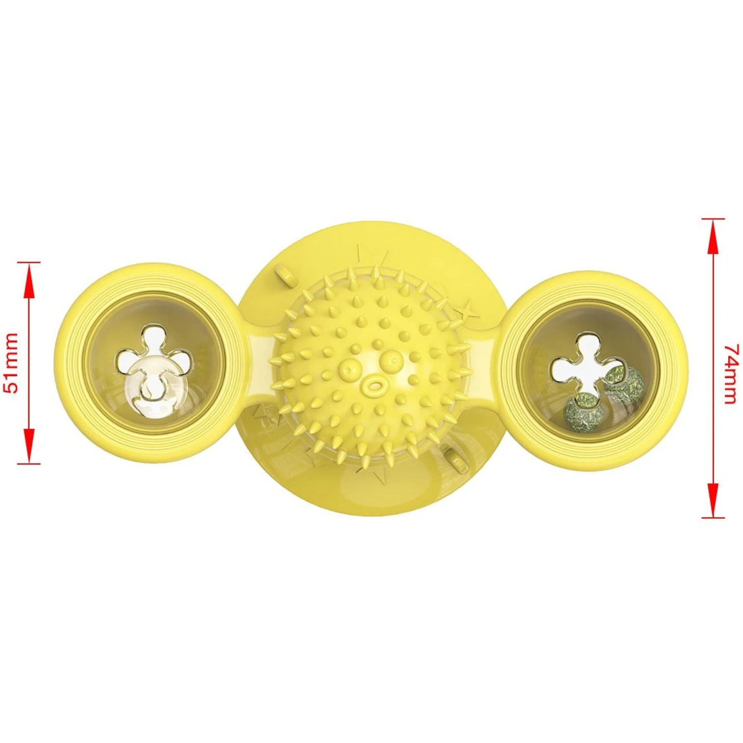 With the Pet Life ‘Windmill’ Rotating Suction Cup Spinning Cat Toy, you can keep your kitty entertained while also supporting his dental health. This toy suctions and grips to hard surfaces like floors and glass, and it spins around at the swipe of a paw. It has dual-sided containers, with two catnip balls on one side and an LED lightning ball on the other. Together, the sides provide a su-purr fun and engaging experience for your kitty. The center swivel also features specially designed ridges that massage your furbaby’s gyms and brush his teeth. You can even spread toothpaste or gel onto the surface for further teeth cleaning benefits. When you need to remove the toy, the pinch-to-release flap on the suction cap makes that easy.